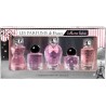Un coffret de cinq parfums français pour femme. Contenu : Lovely French 12 ml + Megic Rose 10,5 ml + Mademoiselle France 9,4 ml + Mon Otage 9,3 ml + Viva Paris 8,5 ml