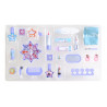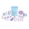 Contenu : 2 vernis à ongles, palette pailletée 8 couleurs, trousse de maquillage, 1 flacon de gloss, 3 rouges à lèvres, 1 baume à lèvres, 1 applicateur de fard à paupières, 1 poudre pailletée, 1 bague, 2 attaches cheveux, 1 miroir, 1 brosse à lèvres, 1 lime à ongles, 1 séparateur de doigts, 1 peigne à cheveux, 1 autocollant.