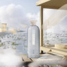 La bouteille de la collection Kenzo Memori s'inspire d'une bouteille de saké. Il contient 15 % de verre recyclé, et la boîte est fabriquée à partir de papiers provenant de sources responsables. Transparent et fermé par un bouchon blanc qui évoque les pierres des jardins zen, le flacon révèle chaque nuance pastel des parfums à travers des lignes pures et raffinées.