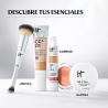 Développé en collaboration avec des chirurgiens esthétiques et des dermatologues, iT COSMETICS CC+ Nude Glow offre une couvrance moyenne pour donner à votre peau un fini lumineux, prend soin de votre peau grâce à un traitement anti-âge et hydratant et protège votre peau grâce à un écran solaire à large spectre avec SPF 40+ UVA/UVB.