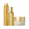 Shampooing lumineux : Appliquer sur les cheveux et le cuir chevelu mouillés. Masser du bout des doigts pour faire mousser et laisser agir pendant 2 à 5 minutes. Retirer avec beaucoup d'eau. Masque opulent : Il est recommandé de l'appliquer au lavabo, en dehors de la douche, pour une expérience optimale du rituel. Appliquer sur les cheveux et le cuir chevelu humides, mèche par mèche. Puis peigner, masser et envelopper les cheveux dans un turban et laisser agir pendant 15 à 20 minutes. Rincer abondamment à l'eau. Traitement sans rinçage Shield : agiter avant utilisation pour mélanger et activer les ingrédients actifs. Appliquer sur les cheveux humides, peigner et masser jusqu'à absorption des paillettes d'or. Peut également être utilisé sur les cheveux secs pendant la journée pour une protection et une hydratation supplémentaires ou avant le coucher comme traitement de nuit réparateur en enveloppant les cheveux dans un turban. Ne pas rincer.