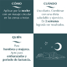 Appliquez le traitement brûle-graisses nocturne avec un massage circulaire sur les zones à traiter (ventre, jambes ou fesses). Son parfum frais est idéal pour se détendre avant de se coucher. Dormez paisiblement tout en luttant contre les graisses.