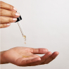 Appliquez très peu sur vos mains (3 gouttes suffisent) et étalez sur l’ensemble des cheveux secs.