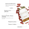 Extrait sec de racine de polypode (Polypodium leucotomos Poir.) ; gélule (agent d'enrobage (hydroxypropylméthylcellulose) colorant (oxydes de fer)) ; extrait sec breveté de pamplemousse (Citrus paradisi Macfad.), extrait sec de feuilles de romarin (Rosmarinus officinalis L.) et extrait sec de feuilles d'olivier (Olea europaea L.) ; hydroxytyrosol et polyphénols brevetés ; oléorésine riche en astaxanthine de l'algue Haematococcus pluvialis (algue Haematoccus). ) ; hydroxytyrosol et polyphénols brevetés ; oléorésine riche en astaxanthine de l'algue Haematococcus pluvialis ; extrait sec de fleurs de tagete (Tagetes erecta L.) ;5 % de lutéine ; vitamine C (acide L-ascorbique) ; agent de charge (cellulose microcristalline) ; anti-agglomérants (dioxyde de silicium, sels de magnésium d'acides gras) ; biotine (D-biotine).