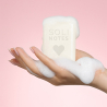 Grâce à sa base lavante enrichie en huile d'amande douce et en beurre de karité bio, notre pain de savon ultra-riche nettoie votre peau en douceur et la laisse veloutée et délicatement parfumée.