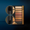 La palette comprend des ombres à paupières veloutées aux finitions mates, brillantes et chatoyantes, allant des neutres aux brillants et des clairs aux profonds.