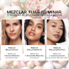 Elle fixe, corrige, matifie et surtout illumine, grâce à une combinaison de billes colorées, mates et nacrées.