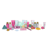 30 ml de lotion pour le corps, 30 ml de shampoing, 30 ml d'après-shampoing, 30 ml de gel douche, 30 ml d'exfoliant pour le corps, 30 ml d'exfoliant pour le visage, 30 ml de nettoyant pour le visage, 30 ml de crème pour les mains, 20 ml de beurre corporel, 20 ml de crème pour les pieds, 10 g de baume à lèvres, 10 ml de crème pour le visage, 8 ml de masque gel pour le visage, un savon en forme d'étoile, un savon en forme d'arbre, une bombe de bain en forme d'étoile, une bombe de bain en forme de flocon de neige, des sels de bain, des confettis de bain, une bombe de bain, une éponge de bain, un séparateur d'orteils, une lime à ongles, un élastique pour les cheveux.