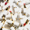 Diverse tonalità sono presentate in una versione bianca e oro dell'iconico astuccio ROUGE COCO BAUME. La tonalità avorio evoca la morbidezza della texture e l'oro è un vero e proprio richiamo visivo, che lo rende un oggetto del desiderio!