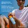 Gel solare per atleti. Offre un effetto rinfrescante immediato proteggendo la pelle con un'altissima protezione UVB/UVA.