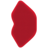 Strumento esfoliante per labbra in silicone rosso a forma di labbra.
