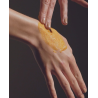 Per un'esfoliazione più intensa, massaggiare delicatamente sulla pelle asciutta e pulita. Per una texture più cremosa e oleosa, aggiungere acqua per sciogliere i cristalli esfolianti naturali.