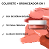 La sua formula contiene Acido Ialuronico, Peptidi e Vitamina E, che si combinano con i pigmenti del fard e del bronzer per una finitura naturale e luminosa sul viso.