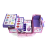 Questo astuccio comprende una palette di ombretti da 8 colori, un lucidalabbra, uno smalto per unghie, applicatori, pennelli, separatore di dita e una lima per unghie.