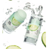 Lo stick è contenuto in un contenitore traslucido ed è arricchito con acido ialuronico e cetriolo, che idratano il viso fino a 48 ore.