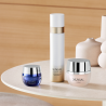 Aplicar suavemente a quantidade de um grão de arroz no dedo médio de manhã e à noite, temperar o produto e aplicar na zona do contorno dos olhos como última etapa do ritual de cuidados faciais.