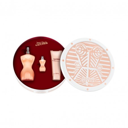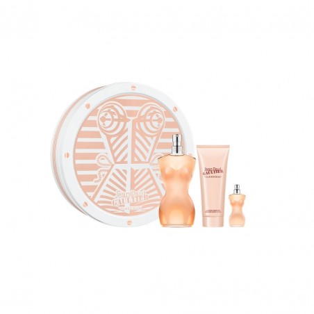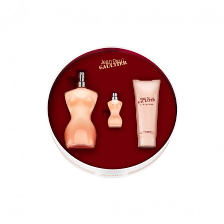 El cofre contiene: Classique Eau de Toilette 100ml + Loción Corporal Perfumada 100ml + EDT Miniatura 6ml.