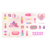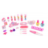Conteúdo: 2 esmaltes de unhas, paleta de brilho de 8 cores, paleta de brilho labial de 3 cores, 1 pote de brilho labial, 3 batons, 2 bálsamos labiais, 2 aplicadores de sombra de olhos, 2 grampos de cabelo, 1 anel, 2 elásticos de cabelo, 1 espelho, 1 pincel de lábios, 1 lima de unhas, 1 divisor de dedos, 1 pente de cabelo.