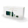 A nova embalagem é inspirada no vidro de laboratório com um conta-gotas dourado 100% metalizado. Cada frasco é lacado com a cor esmeralda, que faz referência à Costa Esmeralda da Bretanha e à pedra preciosa.