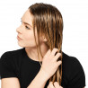 Para proteger o cabelo sensibilizado e evitar que se parta com a fricção do penteado, aplicar 10 a 20 ml na palma da mão, activando o produto esfregando-os juntos, e espalhar uniformemente por todo o comprimento do cabelo húmido, concentrando-se nas áreas mais sensíveis.