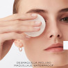 Passo 2: Mergulhar uma bola de algodão com Bi-Facil e segurá-la sobre olhos fechados para humedecer e amaciar a maquilhagem, depois limpar suavemente sobre a maquilhagem para a remover. Repetir até que toda a maquilhagem dos olhos seja removida.