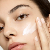 Aplicar um protetor solar ultra-leve na testa, maçãs do rosto, queixo e pescoço.