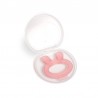 Mordedor con forma de conejito fabricado en silicona. Sus pequeñas burbujas masajeadoras ayudan durante el proceso de dentición aliviando las encías. Además, se puede refrigerar sin problema, lo que produce un efecto calmante intenso.