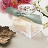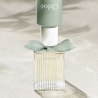 O design ecológico do frasco de vidro plissado inclui 25% de materiais reciclados com uma embalagem de cartão sustentável feita de 40% de materiais reciclados. Inspirado na icónica blusa de crepe de chine da Maison com um laço feminino no pescoço, o frasco intemporal de inspiração vintage é adornado com uma fita 100% reciclada atada à mão numa nova tonalidade verde natural.