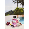 No seu frasco em forma de jóia, a fragrância abre com uma flor de frangipani ensolarada e água de coco.
