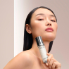 Utilizando o doseador, deite a quantidade necessária de sérum na palma da mão e aplique suavemente no rosto com as pontas dos dedos, evitando a zona dos olhos.