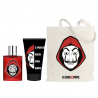 La Casa de Papel apresenta, após o seu novo êxito, esta caixa com uma fragrância de 100 ml com notas cítricas e aromáticas, um gel de duche de 100 ml e um saco com a icónica máscara de Dalí.