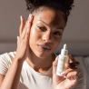 - Estimula a síntese de colagénio e de elastina, graças à Vitamina C e aos Péptidos: melhora as rugas e a flacidez.