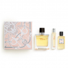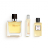 A caixa é composta por Parfum Terre d'Hermès (75 ml), Parfum Terre d'Hermès (15 ml) e gel de duche para corpo e cabelo (40 ml).