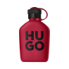 O frasco HUGO INTENSE é apresentado em vermelho, com um acabamento de efeito betão e um logótipo preto arrojado, e fecha-se com uma tampa preta marcante e uma tira de tecido vermelho para aumentar ainda mais a intensidade.