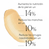 aumenta a nutrição da pele em 14%, reduz as manchas em 10%, estimula a produção de colagénio, resultando numa pele mais firme e mais elástica.