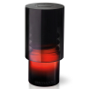 Evoca as mesmas cores que o frasco, com tons gradientes que vão do preto ao vermelho, e apresenta letras em relevo com acabamento em vinil.