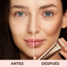 É de longa duração e não realça as imperfeições e os poros do rosto.
