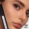 A escova de cerdas longas define as pestanas, capturando até as pestanas mais pequenas.