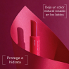 De textura suave e sabor a frutos vermelhos, realça a cor natural dos lábios, deixando-os luminosos com um tom rosado.