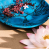O icónico frasco da fragrância Nomade é encimado por toques de ouro, enquanto o nó que envolve o pescoço é envolvido por um tom azul escuro.