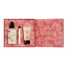 A caixa apresenta um design premium adornado com uma impressão dourada de textura mate e detalhes em relevo inspirados nas folhas de ginkgo, um símbolo de resistência e beleza.