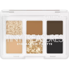 Esta mini paleta de sombras oferece uma combinação harmoniosa de tons de castanho, laranja e champanhe em acabamentos mate, acetinado e metálico.