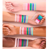 Esta paleta apresenta seis tonalidades vibrantes, activadas por água, com um acabamento mate: rosa nude, lilás suave, magenta cintilante, verde profundo, azul menta pastel e ultramarino.