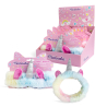 Contém dois geles de banho (um com aroma a morango e outro com aroma a framboesa com purpurina), um champô com aroma a mirtilo, uma loção corporal com aroma a coco e duas bombas de banho em forma de nuvem.