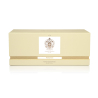 Uma fragrância com uma personalidade reservada mas assertiva, iluminada pela memória do néctar de pera e do heliotrópio branco, envolvida pela doçura do açúcar em pó, do cacau e do leite.