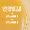 Com extrato de raiz de gengibre + vitamina C, que atuam para uniformizar o tom.