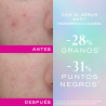 Após 2 meses, as manchas associadas às imperfeições atenuam-se e a qualidade da pele melhora visivelmente: -28% de grãos⁽¹⁾ e -31% de pontos negros⁽¹⁾.