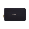 Elegante mala em bombazine preto com o logótipo dourado da La Prairie e um puxador dourado do selo Clinique La Prairie.