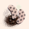 Os No-Puff Caffeine Eye Patches incluem 5 pares de almofadas de gel para os olhos, embaladas em saquetas individuais dentro de um estojo reutilizável que combina com o monograma.
