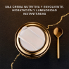 A sua textura rica e sensorial derrete delicadamente ao contacto, suavizando imediatamente a superfície da pele, proporcionando conforto e hidratação, deixando uma sensação de bem-estar duradoura. Com o passar do tempo, a pele torna-se mais elástica, densa e luminosa.